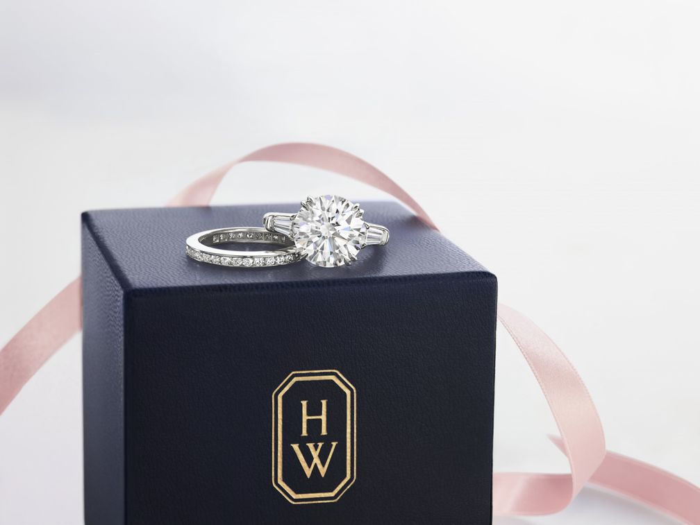 Кольцо Classic Winston с круглым бриллиантом в сочетании с кольцом с бриллиантами (фото любезно предоставлено Harry Winston):