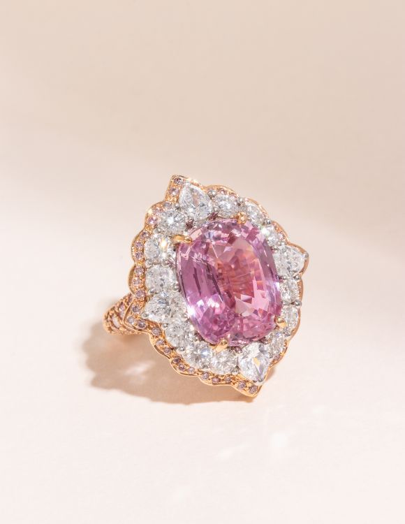 Кольцо с сапфиром падпараджа, розовым бриллиантом и белыми бриллиантами продано на аукционе Hindman за $ 150 000 (Hindman):