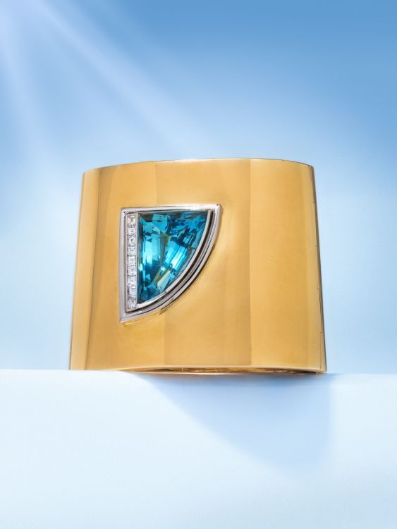 Браслет Paloma Picasso for Tiffany & Co. из двухцветного золота, аквамарина и бриллиантов продан на аукционе Hindman за $ 37 800 (Hindman):