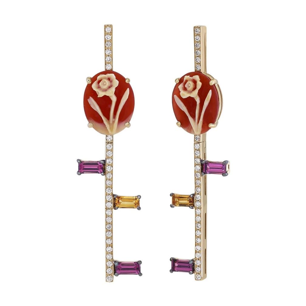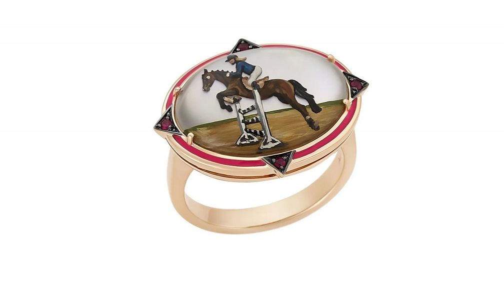 Моя последняя коллекция Change Your Stripes — одна из моих любимых, потому что в ней так много разных элементов. Это набор замечательных старинных камей из смолы, которые были сделаны в Японии в 1950 году; в Италии они редки, потому что обычно камеи делаются из ракушек. Идея в том, чтобы удивить моих клиентов. У вас очень серьезное кольцо, а когда вы переворачиваете его, на другой стороне лимоны, вишни, бабочки, даже помидоры.