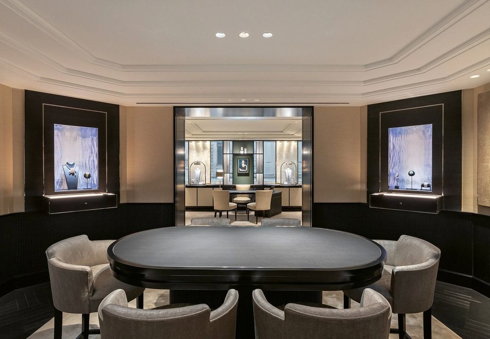 Квадратная форма салонов с витринами в каждом из четырех углов символична. Это тонкий, но намеренный намек на архитектуру Вандомской площади в Париже.