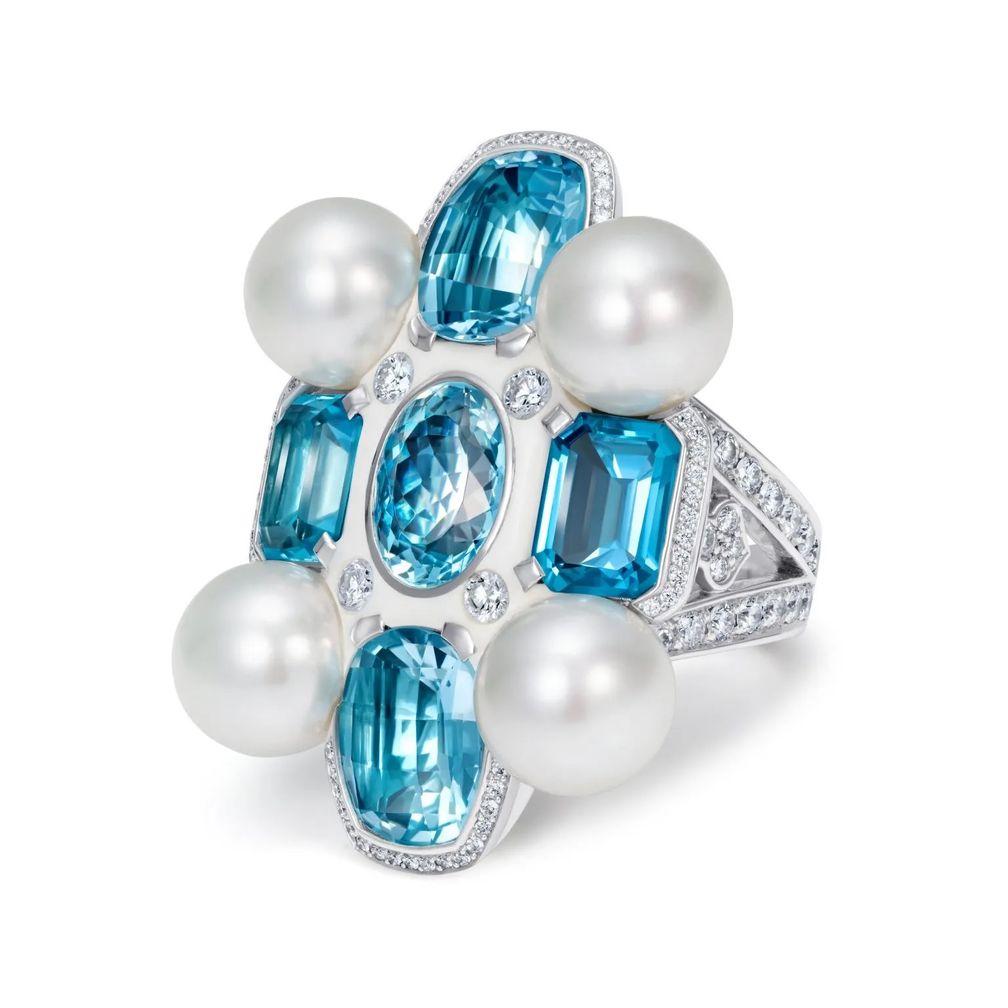 Саре Хо было поручено преобразить несколько реликвий, и в результате получилось кольцо с аквамарином, голубым топазом и жемчугом. Процесс проектирования превращается в совместную работу, в которой клиенты принимают активное участие, изучая различные варианты, пока их не удовлетворит окончательная концепция.