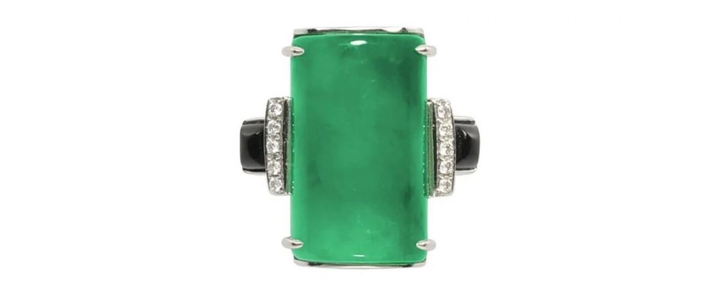 Когда-то жадеитовый портсигар, принадлежавший деду Цзе, был расколот, отполирован и украшен ониксом и бриллиантами на белом золоте, чтобы получилось кольцо, которое она часто носит: