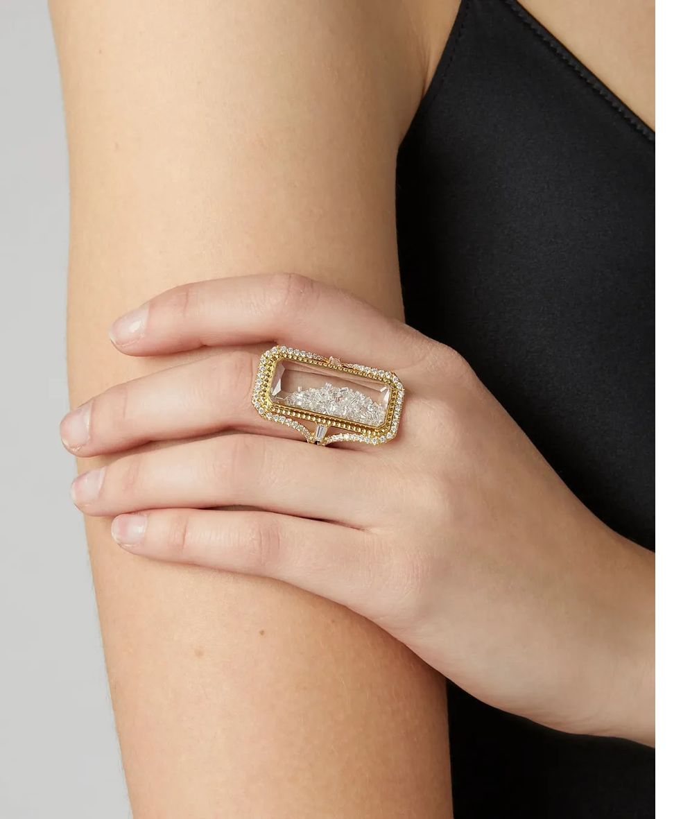После почти 20 лет создания этого дизайна Глик продолжает совершенствовать стиль, сочетая уникальные огранки и цвета бриллиантов во всех видах Shaker. Snow Globe – это новый стиль со 150 бриллиантами, заключенными в один кулон.