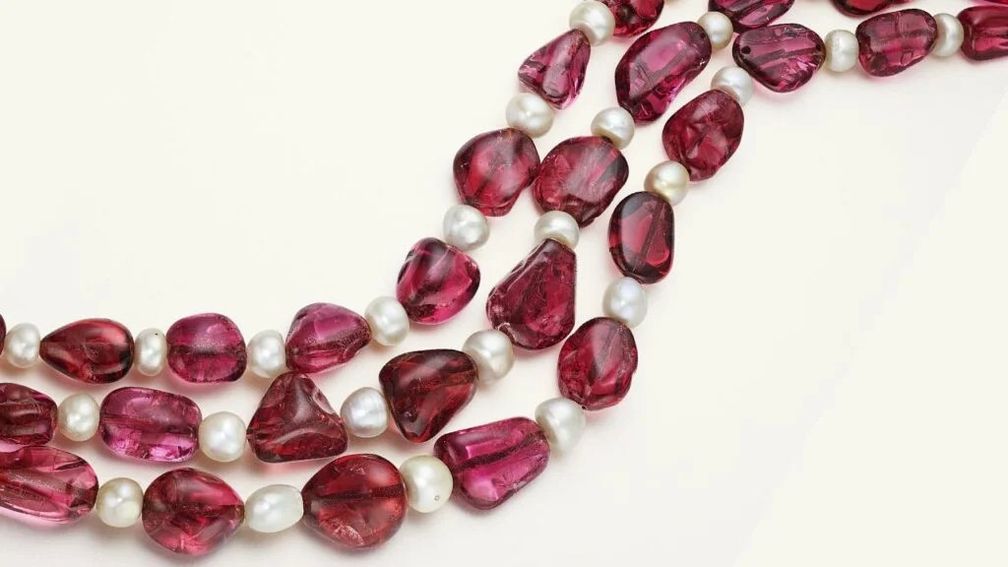 Ожерелье династии Великих Моголов с тремя нитями шпинели весом более 2000 карат и натуральным жемчугом также уйдет с молотка. В комплект входят восемь камней с именами одних из самых могущественных личностей в истории, таких как Мухаммад ибн Туглак, султан Дели, основатель империи Великих Моголов Бабур, а также императоры Джахангир и Шах-Джахан. Ожидается, что его продадут за 2 миллиона долларов: