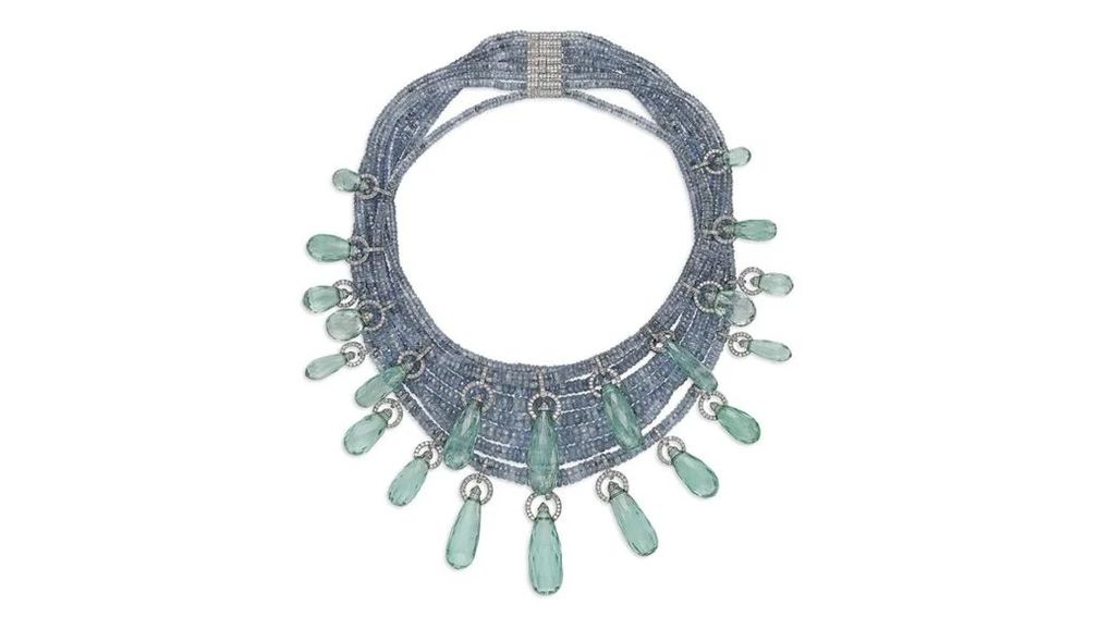 Ожерелье от JAR с сапфирами, изумрудами и бриллиантами из коллекции Энн Хендрикс Басс. Его максимальная оценка составляет 300 000 долларов: