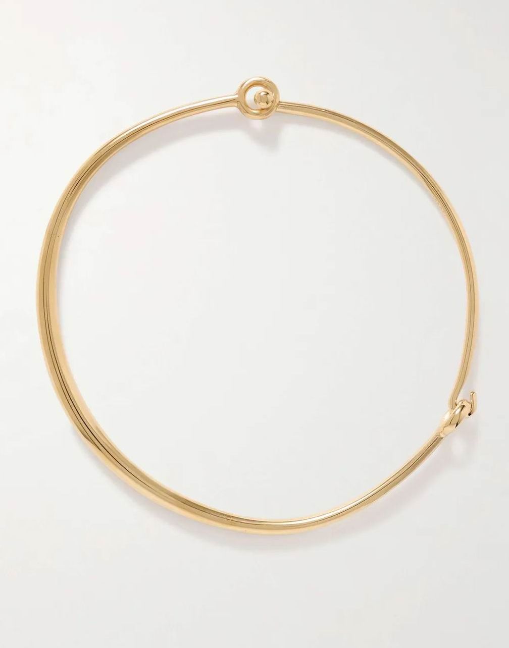 Готовьтесь к тому, что в 2025 году вы увидите гораздо больше выразительных изделий и меньше изящных сочетаний украшений. Что касается ожерелий, то дизайнеры предлагают очень шикарные обновления ожерелья-воротника в скульптурных металлических вариантах.