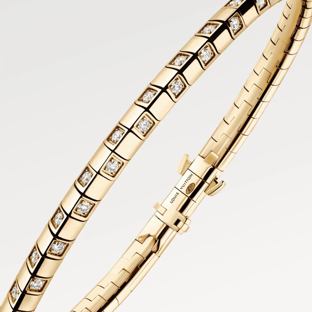 Теперь этот мотив нашел свое воплощение в коллекции ювелирных украшений Le Damier de Louis Vuitton, в которой бриллианты в квадратной оправе сочетаются с полированным золотом.