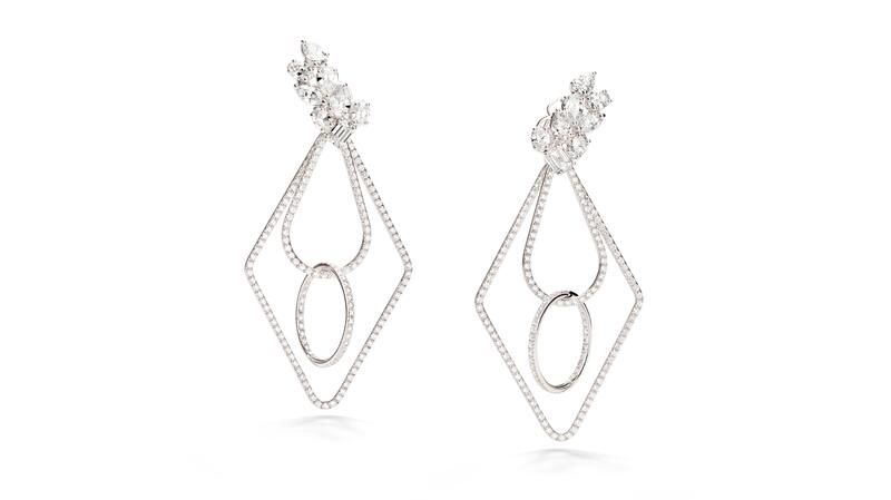 Украшенные бриллиантами серьги двигаются вместе с владельцем и предназначены для ношения как в паре, так и отдельно.