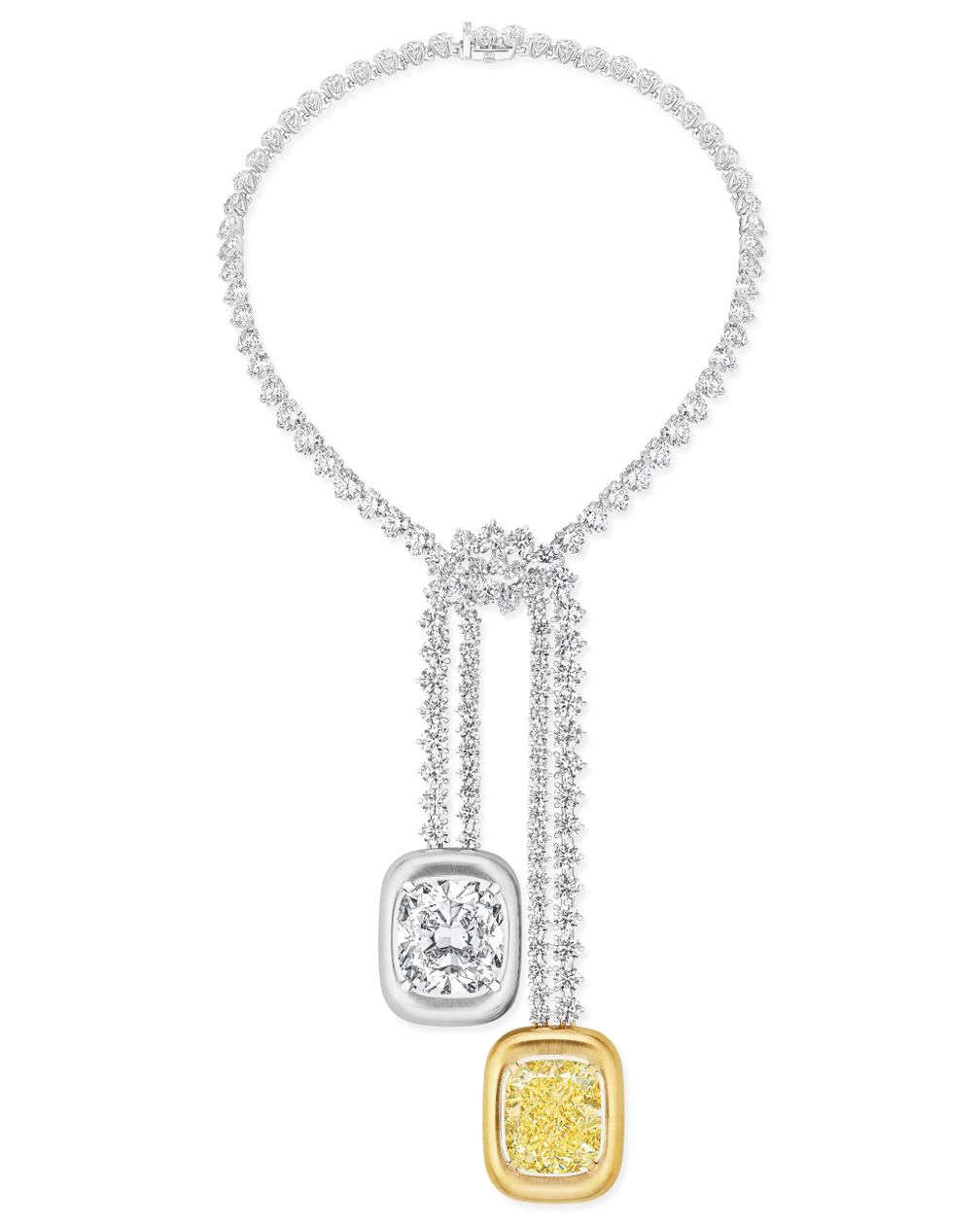 Впервые представленная на показе ювелирных украшений Messika High Jewelry на Неделе моды в Париже в сентябре, эта драгоценность украшена потрясающим желтым бриллиантом в 36 карат и несравненным белым бриллиантом в 33 карата. В общей сложности здесь 232 бриллианта общим весом 129 карат.