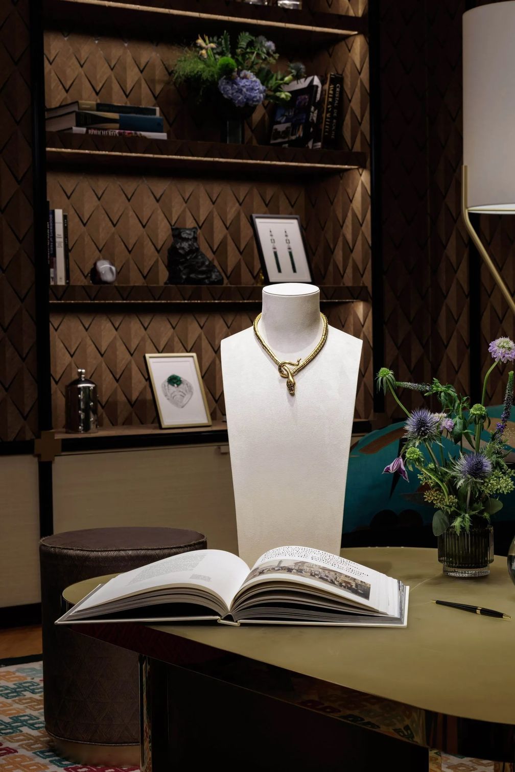 Несмотря на то, что Габриэль Бушерон была на 18 лет моложе своего мужа Фредерика, их любовь была глубокой и прочной. Однажды она получила ожерелье в форме змеи в знак вечной преданности своего супруга перед его отъездом в командировку. В колье точно передана сложная текстура настоящей змеиной кожи, что отличает его от других украшений той эпохи. Его инновационный подход к удобству ношения также нашел отражение в этом изделии, поскольку колье может трансформироваться в браслеты, демонстрируя как мастерство, так и универсальность.