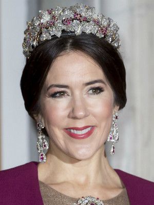 Еще одна счастливая обладательница рубиновой тиары – датская принцесса Мэри Дональдсон. Массивная диадема щедро усыпана рубинами и бриллиантами, которые красуются на элементах в виде листьев.