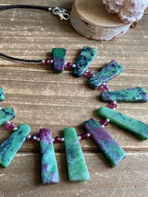 За натуральные минералы часто выдают окрашенное стекло или имитации из дешевых прессованных камней. Определить настоящий фуксит можно по его окрасу, текстуре и характерному блеску.