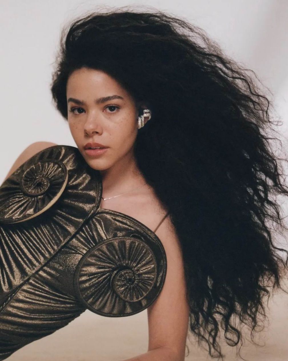 Антония Джентри в каффах для ушей от DYNE и колье Repossi (фотография Mark Lim):