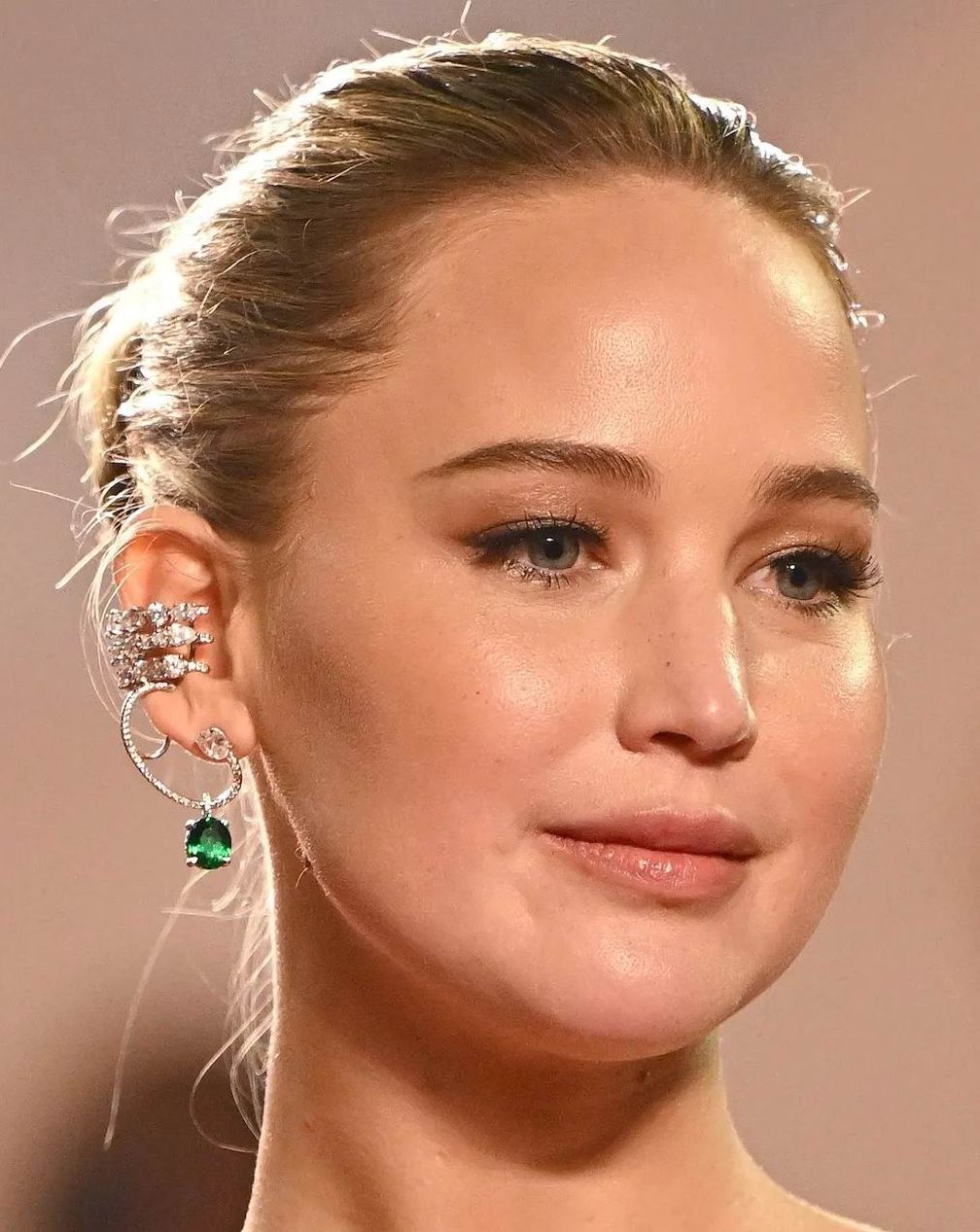 Больше всего запомнилась Дженнифер Лоуренс в черном платье, дополненном роскошными серьгами с бриллиантами и изумрудами от Ana Khouri и бриллиантовым каффом для ушей. Других украшений не требовалось. Этого было достаточно, чтобы вскружить головы.