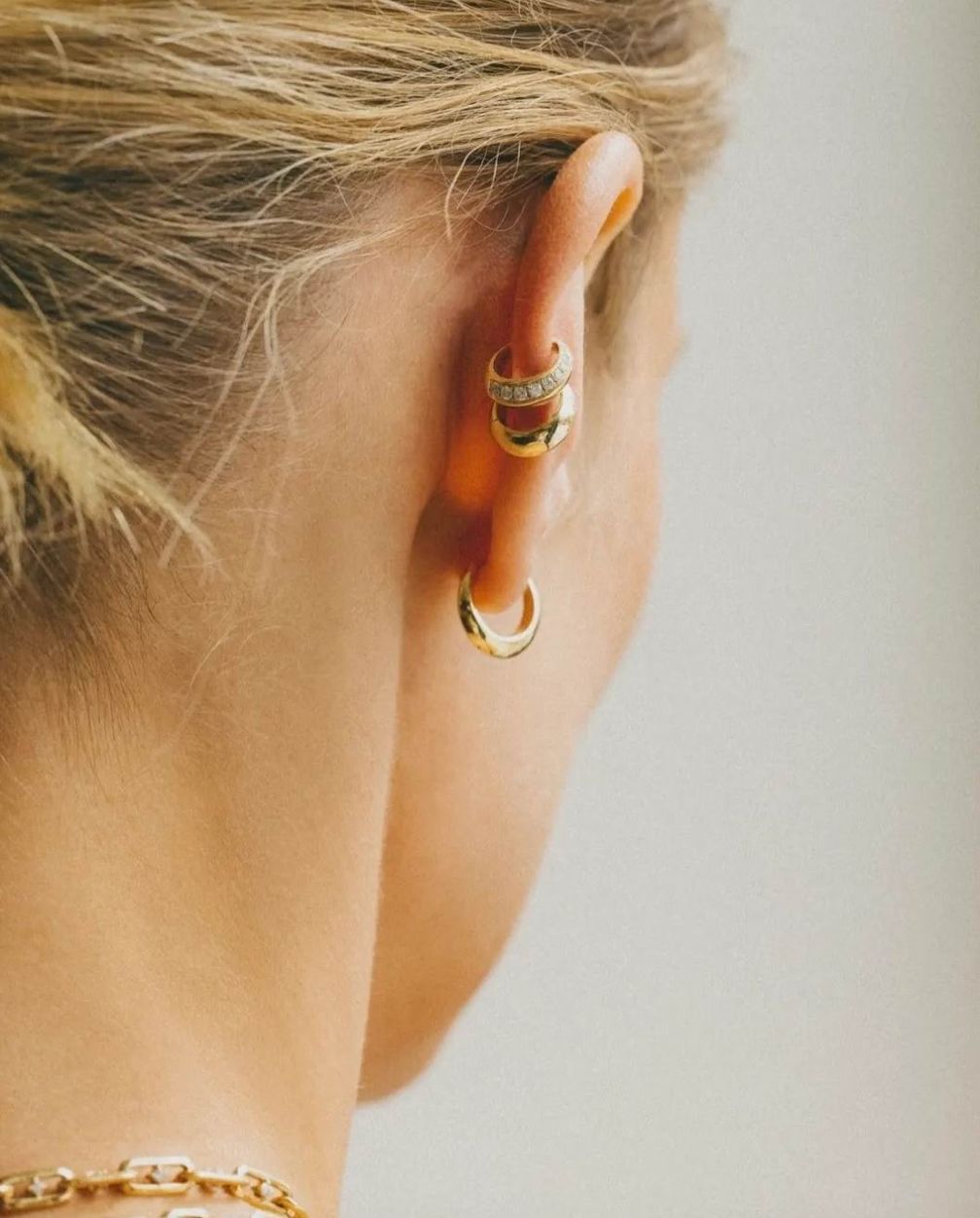 Украшения для ушей – это шикарный повседневный образ, который можно носить не только на красной дорожке, но и в обычной жизни. Это способ использовать великолепные серьги с бриллиантами повторно, надев свои любимые моносерьги или добавив еще один пирсинг высоко в ухе для привычных бриллиантовых сережек-гвоздиков или каффов для ушей.