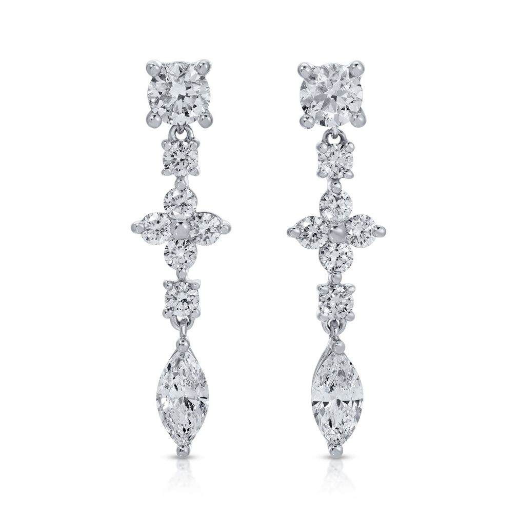 Серьга-гвоздик с крупным бриллиантом украшена цепочкой из четырех круглых бриллиантов с грушевидной каплей внизу. Йоханссон надевала эти серьги на церемонию вручения премии «Оскар» в 2020 году, как раз перед пандемией. «Видеть это на ней, на красной дорожке и наблюдать за жизнью и движением камней – это действительно был момент гордости для меня».