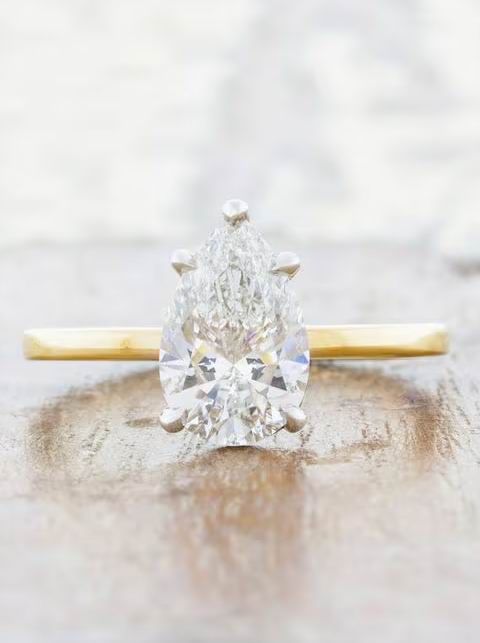 Кольцо с бриллиантом грушевидной огранки, весом 1,5 карата: