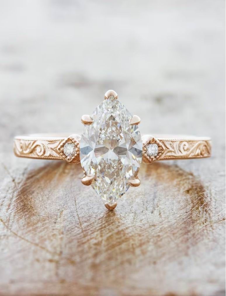 Кольцо с бриллиантом огранки маркиз, весом 1,5 карата: