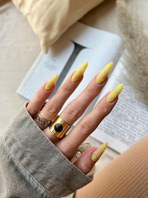 Это насыщенный и сочный нейл-арт, способный многое рассказать о своей владелице. Считается, что светло-желтый дизайн олицетворяет обаяние, романтичность и жизнелюбие, поэтому он подразумевает подбор соответствующих украшений.