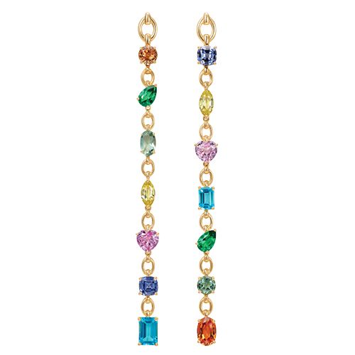 У лондонского дизайнера Надин Айсой есть серьги-капли с разноцветными сапфирами, причем каждый камень имеет разную огранку. Как и изящные серьги-подвески из 14-каратного золота, серьги-трансформеры и украшенные бриллиантами кисточки-цепочки от Guzema. Для большего бриллиантового блеска есть кисточки Cherika от нью-йоркского бренда Sanjay Kasliwal.