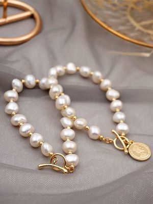 - Жемчужный комплект. В него могут входить любые украшения: серьги, бусы, браслет, кольцо. Такой камень удачно смотрится на женщинах любого возраста и делает образы намного женственнее.