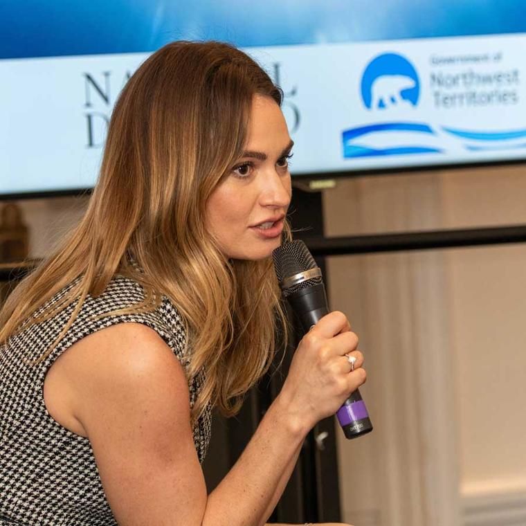 Лили Джеймс рассказала о своем визите в Северо-Западные территории Канады на мероприятии в Лондоне, организованном Советом по природным алмазам и правительством Северо-Западных территорий: