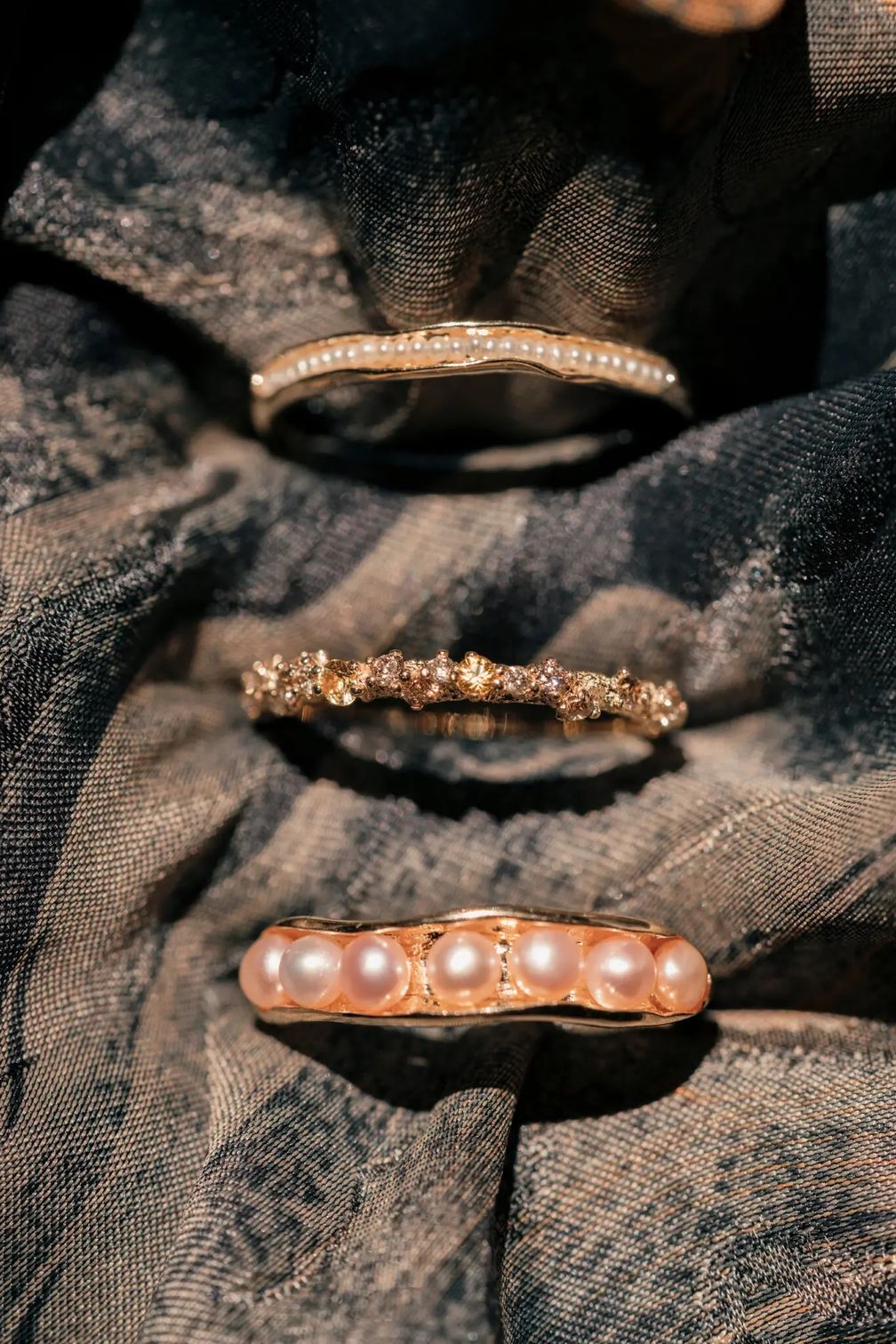 Сверху вниз: Кольца Daughter, Pavé Coil и Mother. Харди черпает вдохновение в природе Бали, таких как листья кувшинок и капли текущей воды (Lauryn Ishak for The New York Times):