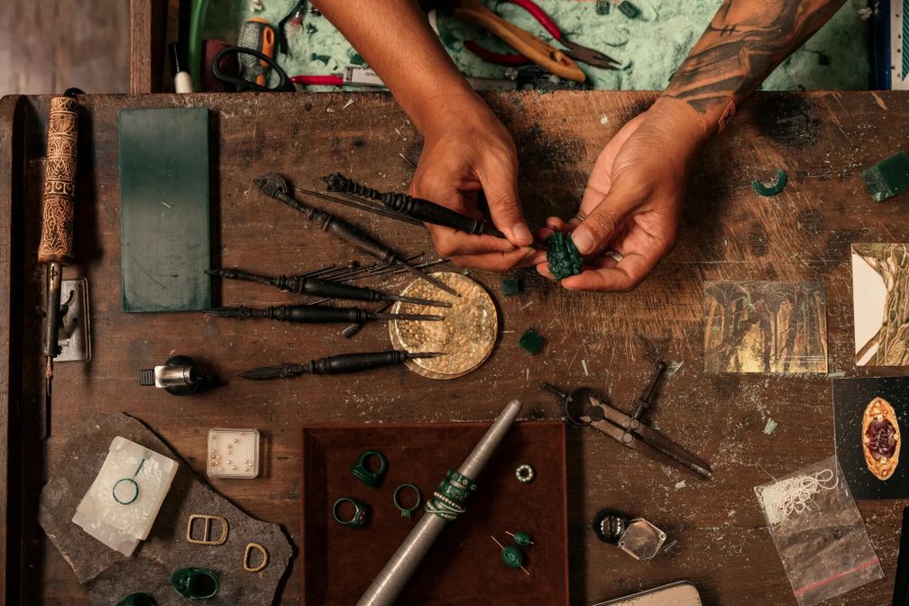 Густи Нгурах Вираяна, резчик компании Carina Hardy, работает над созданием кольца. Харди и Галлахер сказали, что все изделия сделаны вручную на Бали (Lauryn Ishak for The New York Times):