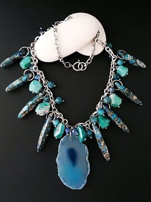 Кианит в украшениях энергетически сочетается с камнями родственной цветовой гаммы