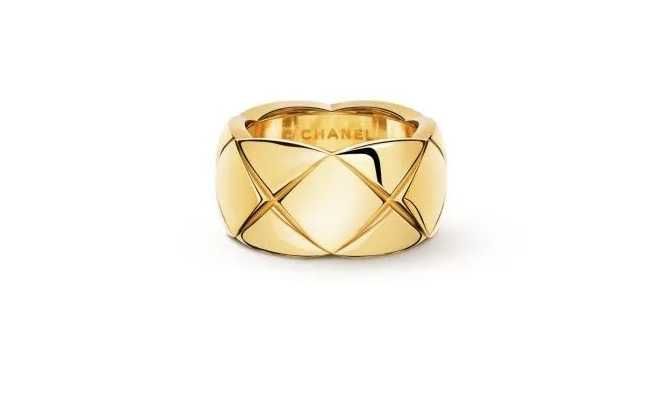 Изготовленное из желтого золота с гравировкой, имитирующей фирменный стеганый узор Дома, это кольцо может быть выполнено из других драгоценных металлов, таких как белое и бежевое золото, а некоторые изделия также украшены бриллиантами.