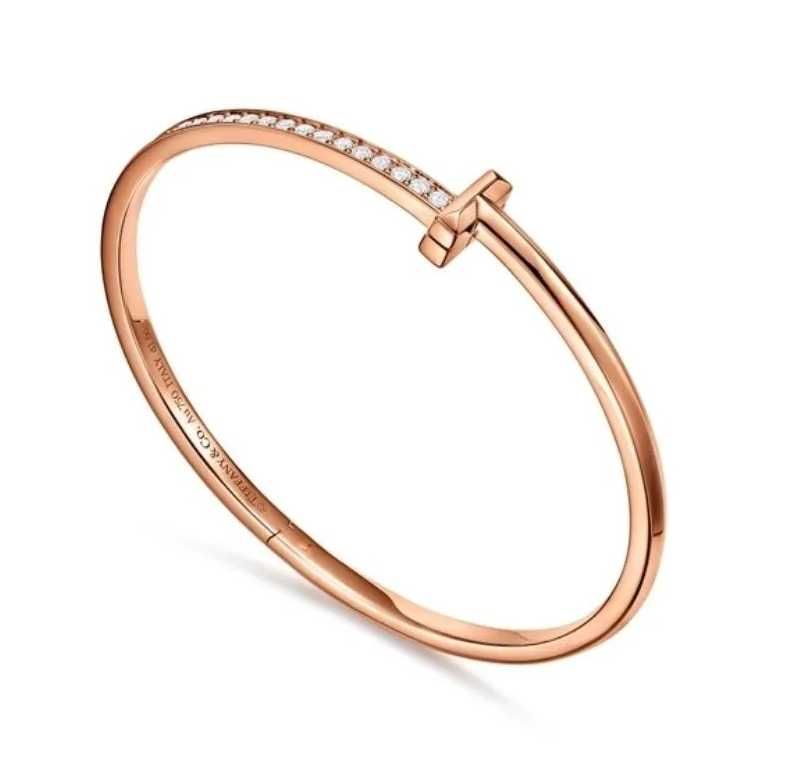 Браслет выпускается в двух вариантах: более объемный T Square и тонкий Wire в белом, розовом и желтом золоте. Некоторые браслеты также украшены бриллиантами круглой огранки или даже бриллиантами огранки багет.