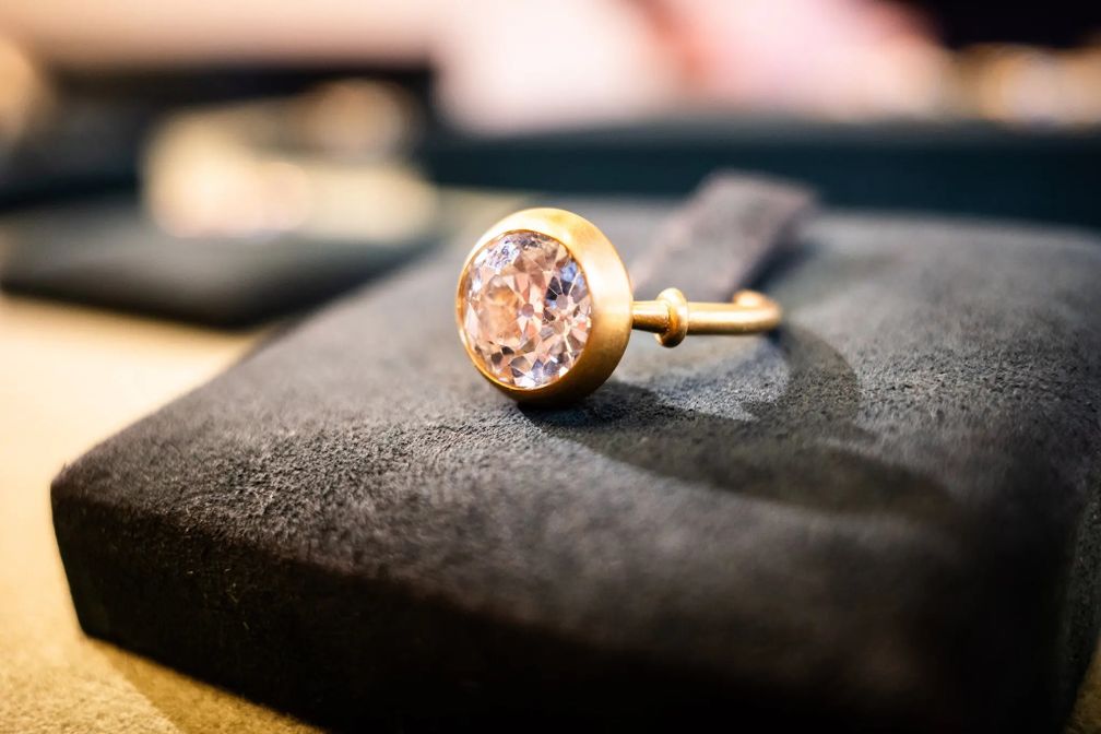 Кольцо с бриллиантами в оправе от нью-йоркского дизайнера Жан Прунис. По словам Прунис, «мы не знаем, как, по нашему мнению, должны выглядеть бриллианты» (Graham Dickie/The New York Times):