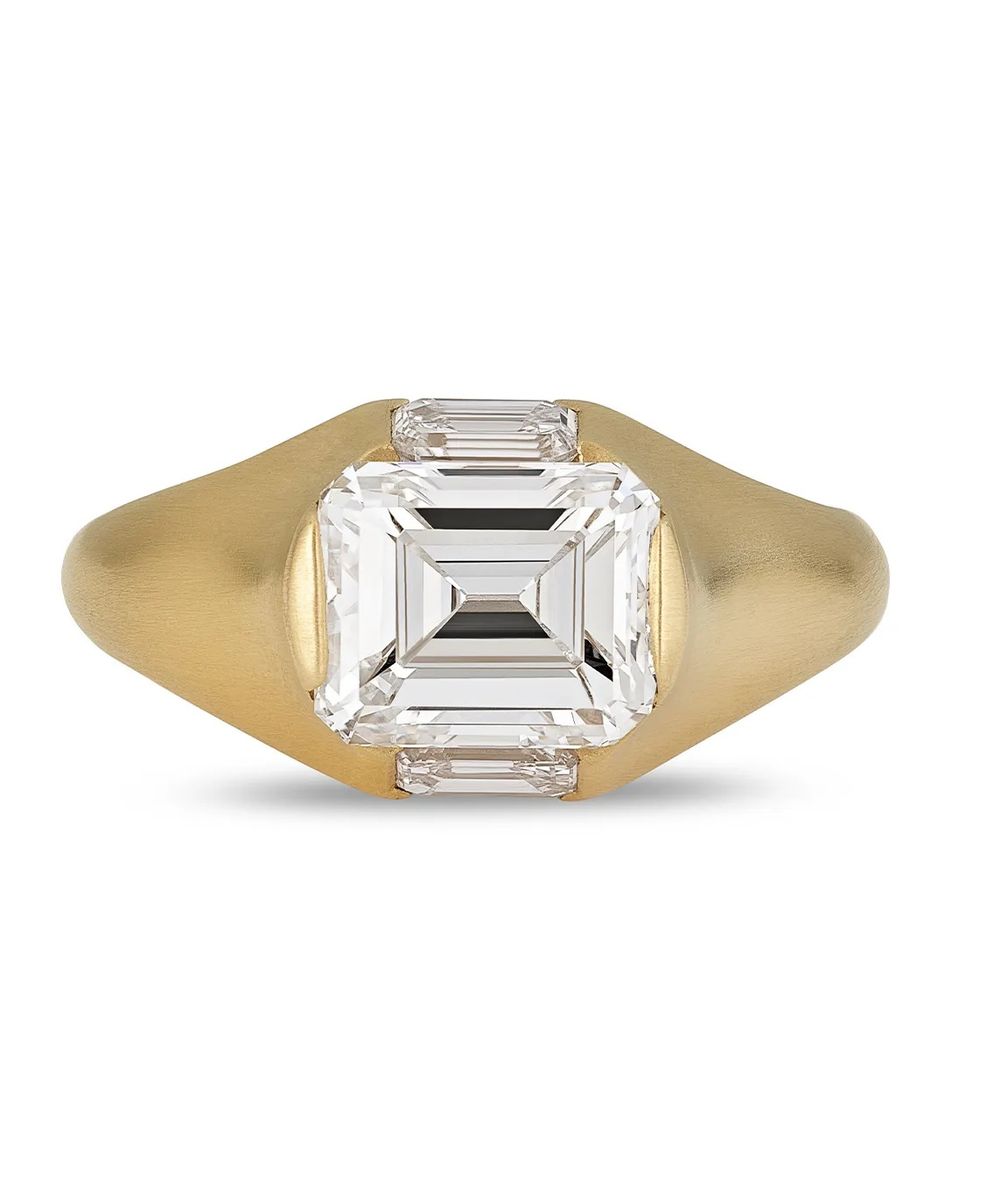 Для пары, любящей пончики, она создала скульптурное золотое кольцо с бриллиантом старинным европейской огранки, окруженным бриллиантами французской огранки, с двумя золотыми пончиками с бриллиантами и посыпкой, спрятанными на внутренней стороне кольца.