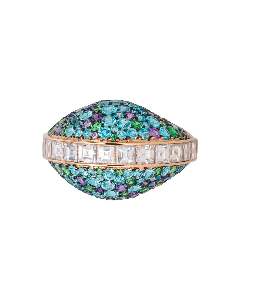 Кольцо Bombe с бриллиантами и турмалинами параиба от Millie and Noah: