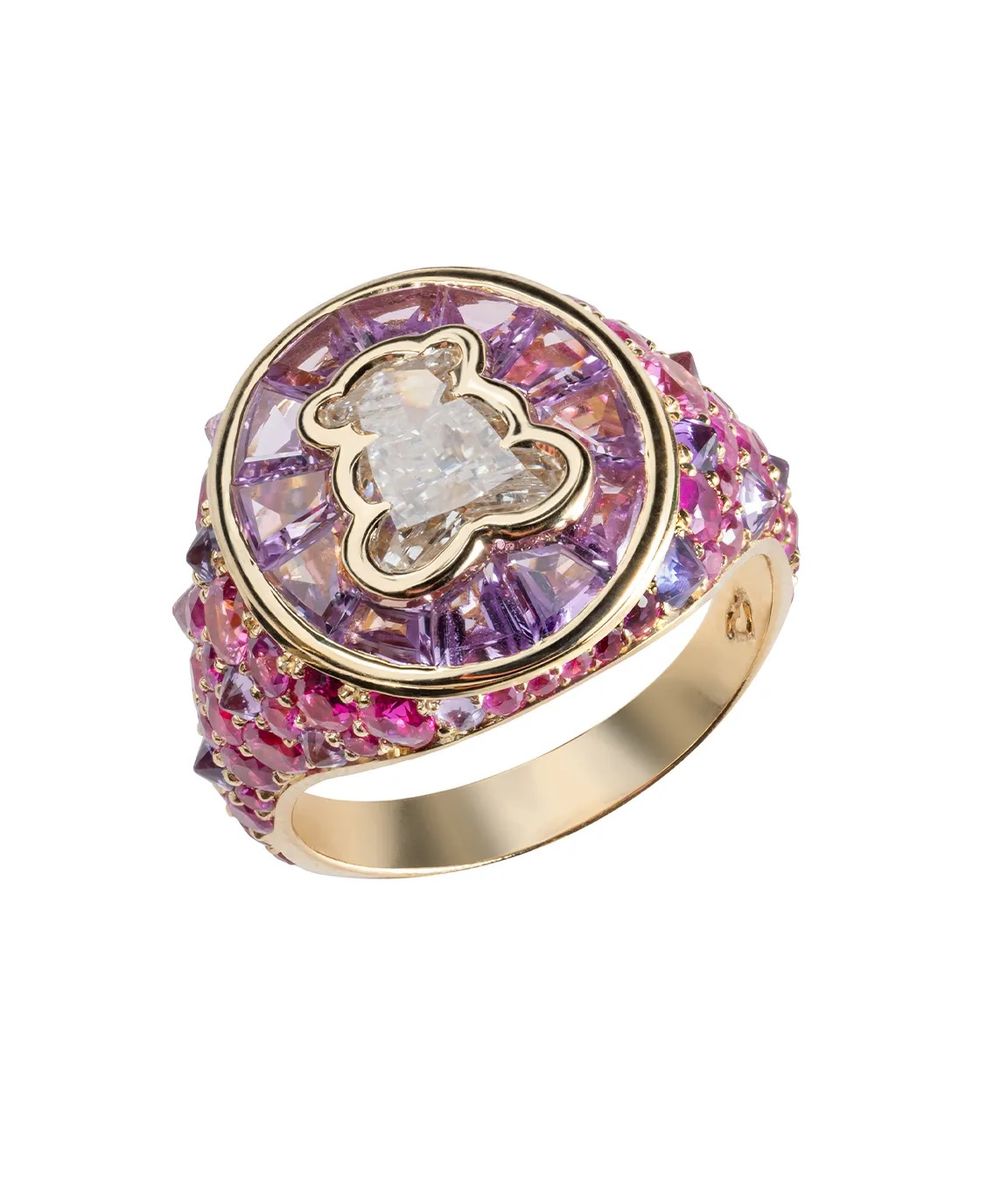 Кольцо с бриллиантом в форме медведя с розовыми и фиолетовыми сапфирами от Millie and Noah: