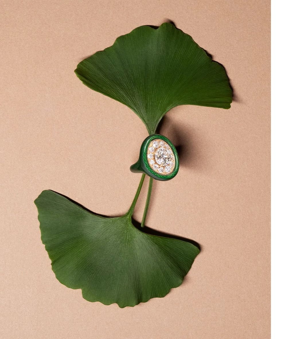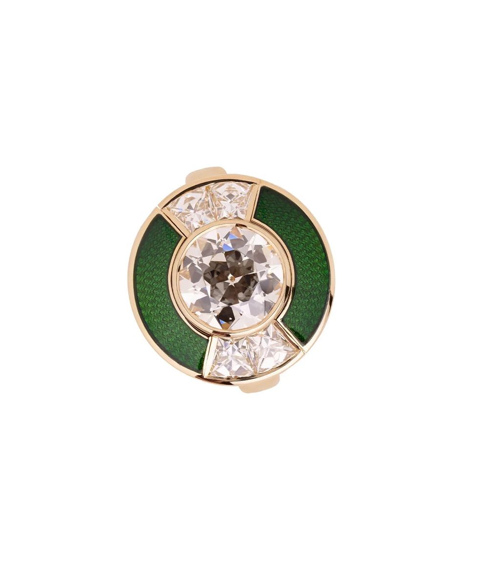 Кольцо с антикварным бриллиантом и зеленой гильошированной эмалью от Millie and Noah:
