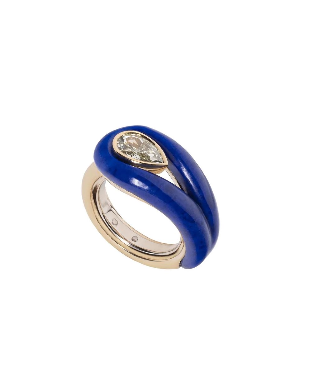 Кольцо с грушевидным бриллиантом и ляписом от Millie and Noah:
