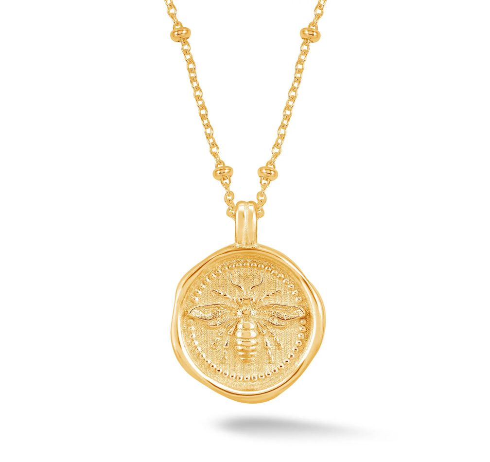 Ожерелье Queen Bee от Dower & Hall представляет собой круглую подвеску с изображением насекомого: