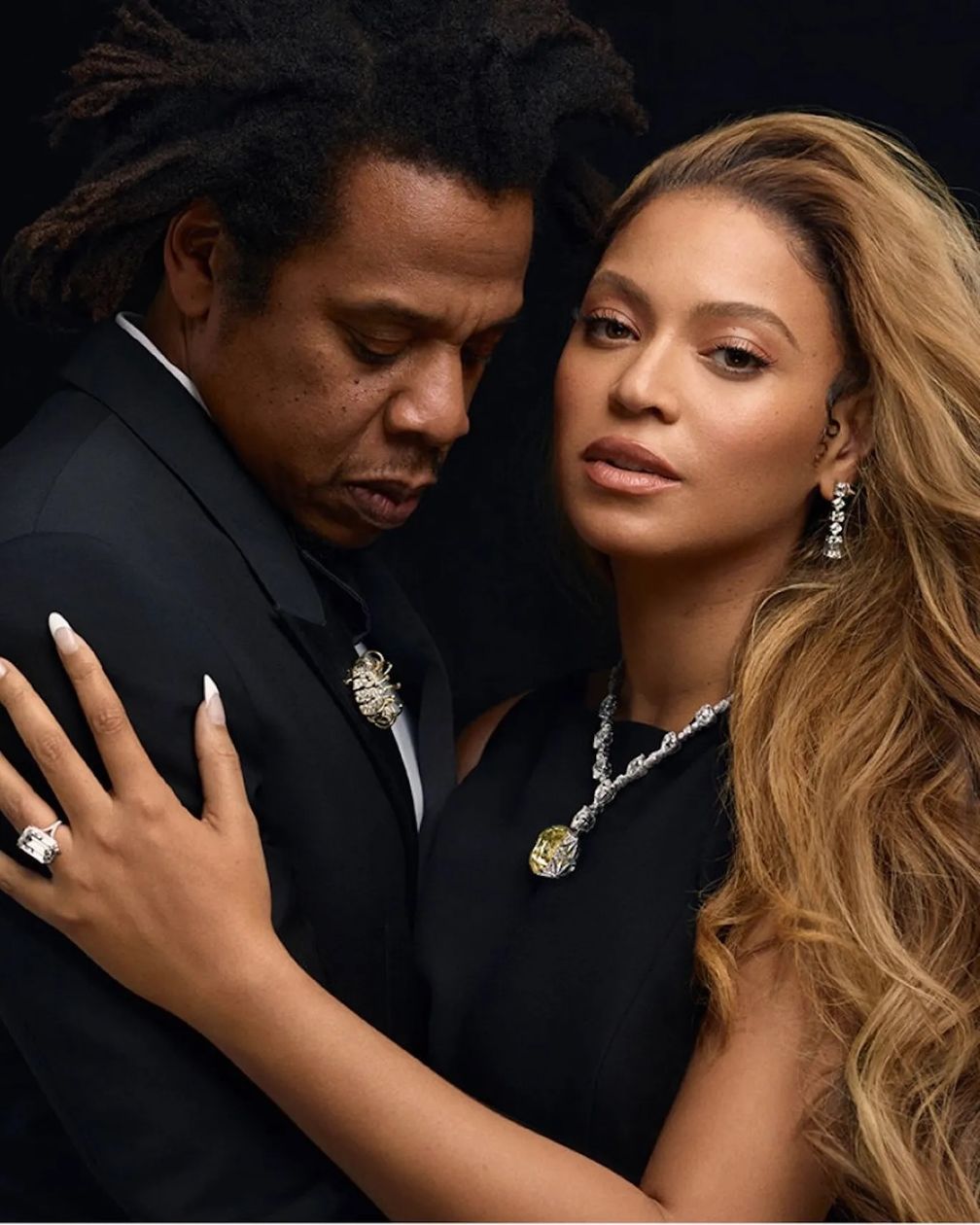 Jay Z с Бейонсе, на которой надето колье с желтым бриллиантом Tiffany (любезно предоставлено Tiffany & Co.):