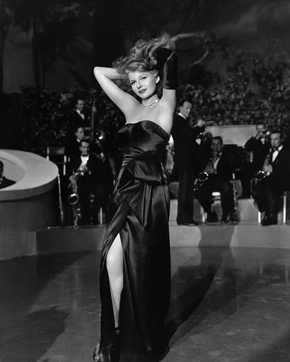 Риту Хейворт можно увидеть во время ее потрясающего исполнения «Put The Blame on Mame, Boys» в фильме «Гильда» 1946 года с Гленном Фордом (Getty Images):