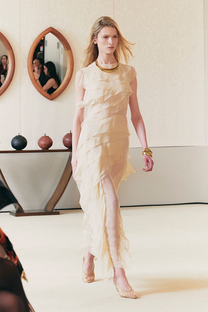 Осенняя коллекция нью-йоркского дизайнера Джозефа Альтузарры этого года отсылает к актуальным тенденциям времени: изысканные базовые вещи, лаконичные детали и элегантность. Альтузарра сочетал некоторые из своих самых прекрасных и женственных моделей платьев — вышитую органзу, струящийся атлас, многослойный и ярусный прозрачный шифон, облегающий трикотаж — со смелыми, объемными колье-торками. Сочетание простое и эффективное: добавьте нотку скульптурности к мягким формам.