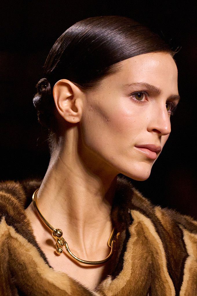 Истоки колье-торк восходят к древним культурам. Раньше это жесткое кольцо на шею носили как символ статуса и положения в обществе. Возможно, сегодня оно уже не имеет такого значения, но его коннотации власти и уверенности, заложенные в одновременной смелости и сдержанности стиля, все еще актуальны.