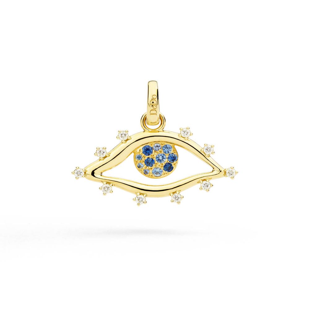 Глаз, выполненный из 18-каратного желтого золота с пастельно-голубыми сапфирами и белыми бриллиантами, становится церемониальным символом ясности и защиты. Его аналог из 9-каратного желтого золота со швейцарскими топазами предлагает более мягкий повседневный талисман, сочетающий в себе сияющее очарование с доступной элегантностью.