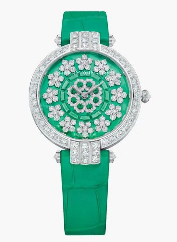 Harry Winston никогда не позволял особому моменту пройти без серьезного празднования, поэтому создал две новые модели часов, чтобы отметить это событие. Любимые многими Premier Sunflower Automatic 36 мм теперь доступны в свежих новых розовых и зеленых оттенках. У каждой модели корпус из белого золота, инкрустированный 120 бриллиантами круглой огранки, и замысловатый перламутровый циферблат.