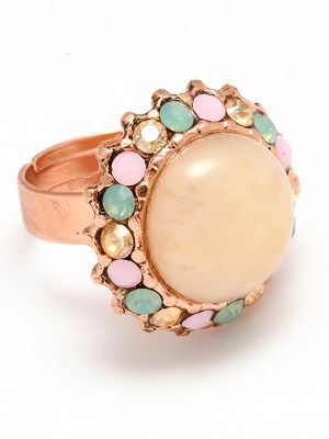 Оригинально выглядят кольца с округлым арагонитом. Необычный цвет минерала привлекает внимание, и украшение такого плана никогда не теряется из виду. Мастера для обрамления самоцвета при изготовлении кольца используют серебро и золото. Есть изделия, где драгоценность выгодно подчеркивает платина. Стоит сказать, что подобные ювелирные изделия находятся в бюджетном сегменте. Такое кольцо может стать отличным подарком для женщины, которая ценит оригинальность и нетривиальность в своем образе.