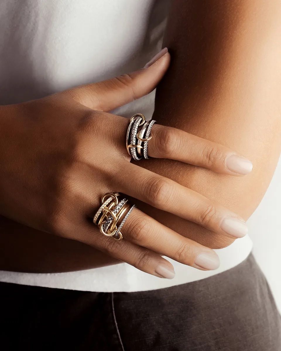 Черный родий варьируется от темно-серого до угольно-черного, причем наиболее популярны самые темные тона, особенно для зубцов, которые придают бриллиантам более яркий контраст. Кольца с зубцами, покрытыми черным родием, от Spinelli Kilcollin демонстрируют этот эффект.
