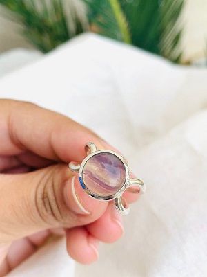 Для тех, кто ценит элегантность и лаконичность даже в мелочах, идеальным вариантом станет кольцо-солитер. Нежные расцветки флюорита прекрасно гармонируют с маленькой оправой, добавляя образу нежности и грации. Такое ювелирное изделие обычно выполняется в едином стиле с камнем либо прямоугольной, либо круглой формы, поэтому оно считается универсальным.