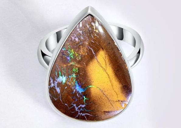В кольце с валунным опалом можно увидеть широкий спектр цветов. Синие и зеленые цвета, хоть и встречаются часто, очень желательны. Красные и оранжевые цвета в кольце часто считаются более ценными из-за их редкости. Фиолетовый и желтый также могут присутствовать, но хоть их крайне сложно найти, очень немногие люди имеют интерес к этим цветам, поэтому они не пользуются спросом.