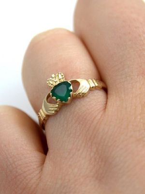 Если вы хотите подобрать золотое или серебряное кольцо с яркой вставкой, обратите внимание на изделия с полупрозрачными хризопразами – это самые дорогие разновидности зеленого агата. Хризопразы бывают яблочного, голубовато-зеленого или насыщенного изумрудного окраса. Такие кольца смотрятся очень нарядно, особенно в золоте.